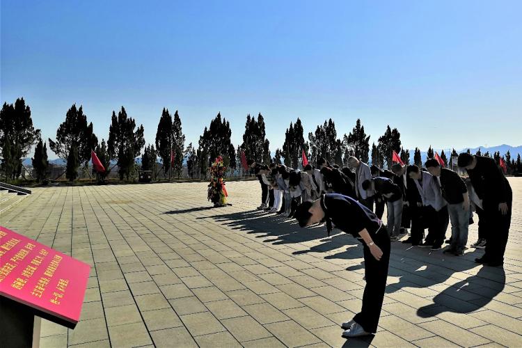 (本网讯:文|付淑媛 图|付淑媛 夏天仪)为扎实开展“不忘初心牢记使命”主题教育,缅怀革命先烈,铭记历史,丰富主题教育形式和内容。10月19日上午,外国语学院全体师生党员前往浮梁县烈士陵园开展“不忘初心、牢记使命”主题教育之祭奠烈士活动。