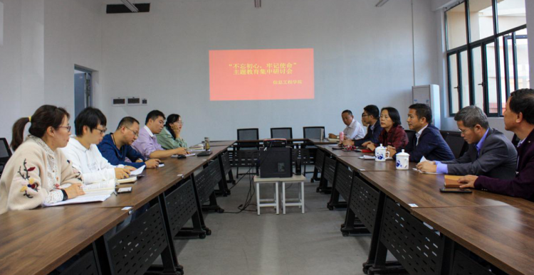 (本网讯:文|占俊 图|胡欣)为贯彻落实学校“不忘初心,牢记使命”主题教育工作会议精神,根据集中学习研讨安排,10月22日下午,信息工程学院党总支召开主题教育专题学习研讨会,会议由党总支书记林瑶主持。校党委委员、纪委书记李新荣莅会指导。