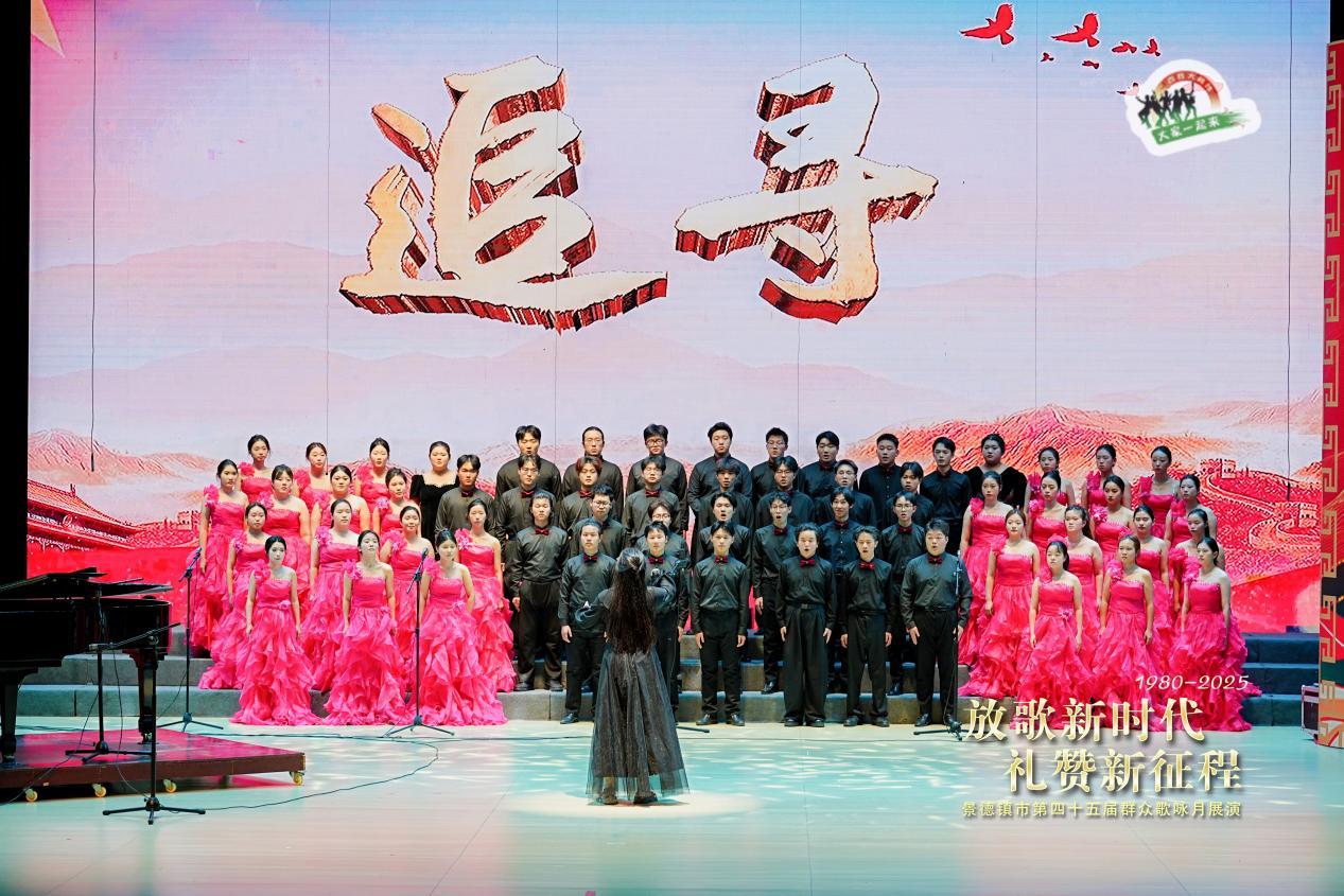 (本网讯:音乐舞蹈学院)12月3日晚,由中共景德镇市委宣传部、景德镇市文化广电旅游局主办的“放歌新时代 礼赞新征程”景德镇市第四十五届群众歌咏月活动在市群众文化活动中心圆满落幕。我校音乐舞蹈学院合唱团凭借一曲饱含深情与力量的《追寻》惊艳亮相,以精湛的演唱技艺和真挚的情感表达脱颖而出,成功摘得金奖,用青春旋律诠释了景院人的艺术追求与家国情怀。