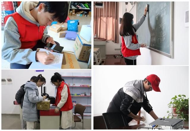 环保志愿服务活动中,志愿者们分别在三栋教学楼、经管楼、学校南门附近、学生活动中心附近和操场五个区域打扫校园卫生。在教学楼内将教室内的桌椅摆放整齐、擦拭课桌与黑板,将操场与南门附近地面的垃圾清理干净等,让校园变得更加干净整洁。