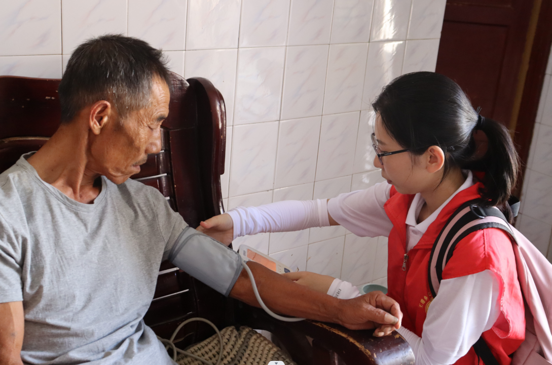 在浮梁县王港乡坑口村,队员们上村入户,为村民提供血压、血糖检测,并逐户赠送了夏季常备药物。在义诊的同时,志愿者们还向村民科普常见疾病的预防和保健知识,帮助他们养成健康生活习惯和良好生活方式的意识,让村民们感受到了景院大学生实践服务队的关爱和温暖,也帮助他们更好地了解自己的身体情况。