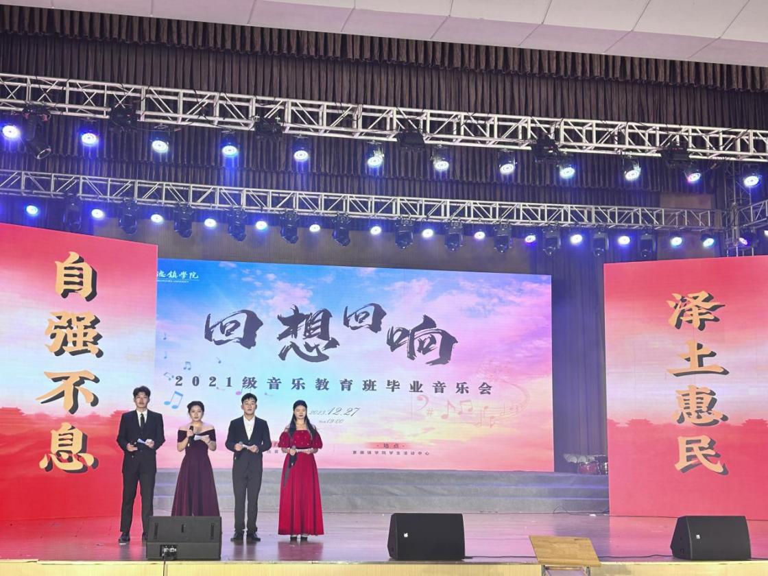 (本网讯:校报记者康金晶、陈祎恬)时光飞逝,离别近在咫尺。一转眼,2021级音乐教育全体学生毕业在即。怀抱感恩之心,于舞台上挥洒热情,12月27日晚,我校在大学生活动中心举办2021级音乐教育班毕业音乐会。音乐舞蹈学院院长于芳出席音乐会,全校师生400余人共度此次盛会。