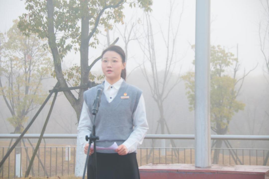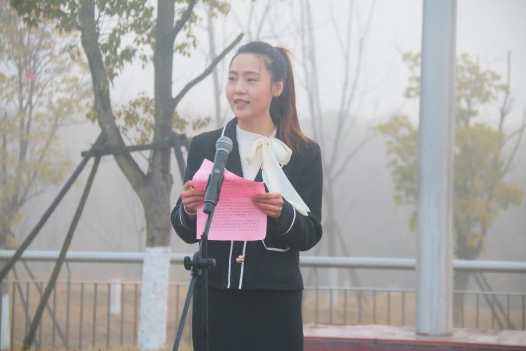 第十六期江西省“青马工程”学员、江西省“扬帆计划”参与者、人文学院2020级汉语言文学三班夏子怡作为学生代表在国旗下发言,呼吁青年学子应当接过时代的大旗,弘扬爱国传统、赓续红色血脉,以朝气蓬勃的姿态接替民族复兴的使命。