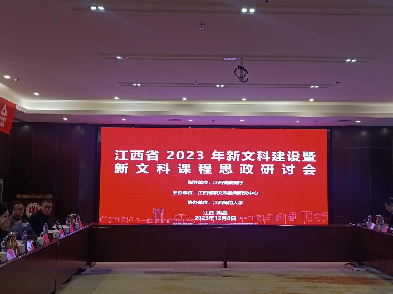 (本网讯:曾娟玲)12月8日,江西省2023年新文科建设暨江西省课程思政研讨会在南昌召开,我校应邀参会,教务处负责人司春灿、教育学院副院长黄书生、教务处学科专业建设科相关同志参加会议。